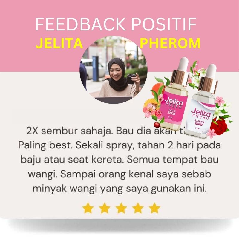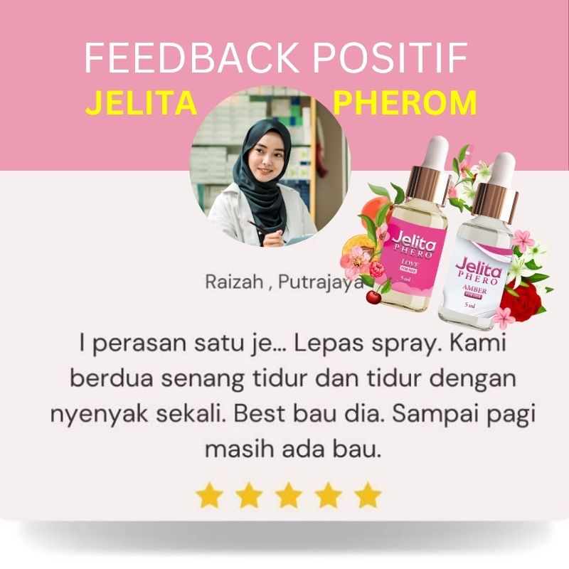 Jelita Phero bukan sekadar wangi, tapi mengandungi pheromone aktif yang terbukti secara sains dapat meningkatkan tarikan semula jadi seseorang. Ramai wanita akui pasangan mereka jadi lebih mesra, lebih suka dekat dan lebih memberi perhatian. Ini kerana pheromone bantu merangsang isyarat biologi halus yang mencetuskan chemistry tanpa disedari. Sesuai sangat untuk isteri, wanita bekerjaya dan yang nak tampil lebih yakin dalam pergaulan.