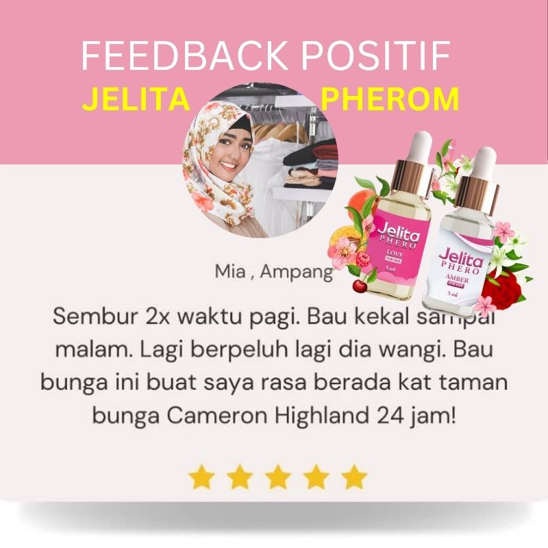 Ada sesuatu tentang bau yang menyenangkan, Jelita Phero mampu mengubah mood dan emosi. Sebab itu ramai pengguna Jelita Phero berkongsi mereka rasa lebih tenang, yakin dan bersedia menghadapi hari bila pakai perfume ini. Bukan sekadar cantik luaran, tapi dalaman juga lebih seimbang. Perfume ini dah jadi ‘armor’ harian mereka untuk tampil mempesona tanpa rasa ragu.
