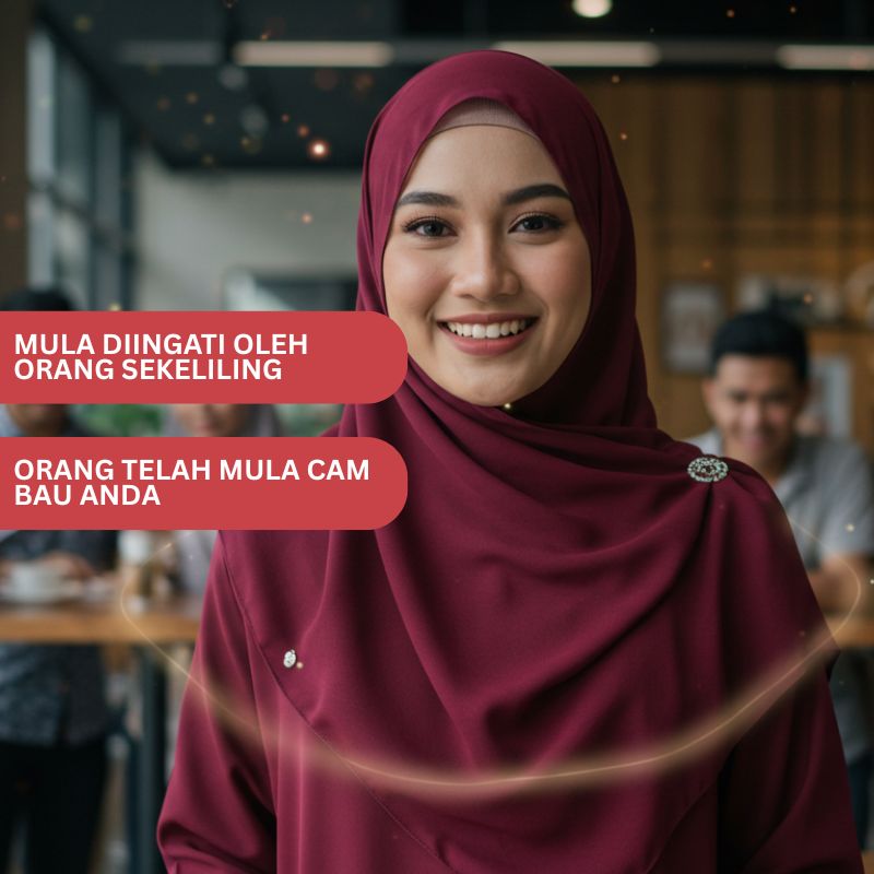 PENAFIAN: Kesan penggunaan wangian ini mungkin berbeza mengikut keserasian tubuh dan hormon setiap individu. Prestasi dan ketahanan bau dipengaruhi oleh faktor gaya hidup, jenis kulit, dan cara pemakaian. Namun, berdasarkan banyak testimoni yang diterima, produk ini memberikan kesan positif apabila digunakan dengan cara yang betul.