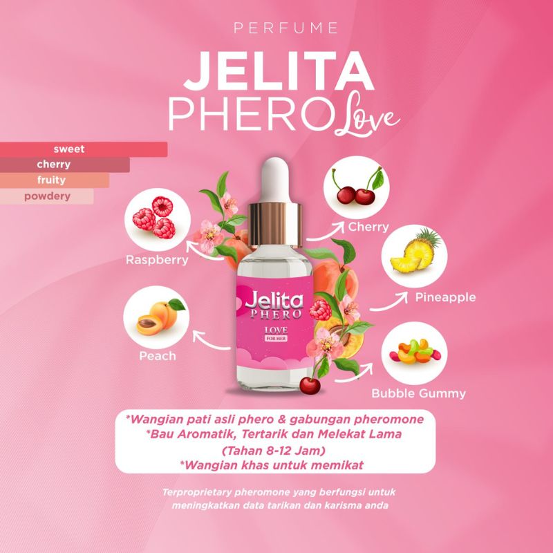 Jelita Phero ialah perfume khas wanita yang menggabungkan pati pheromone aktif dengan nota wangian eksotik. Diformulasi untuk menambah keyakinan, menarik perhatian dan mengekalkan kesegaran diri sepanjang hari.